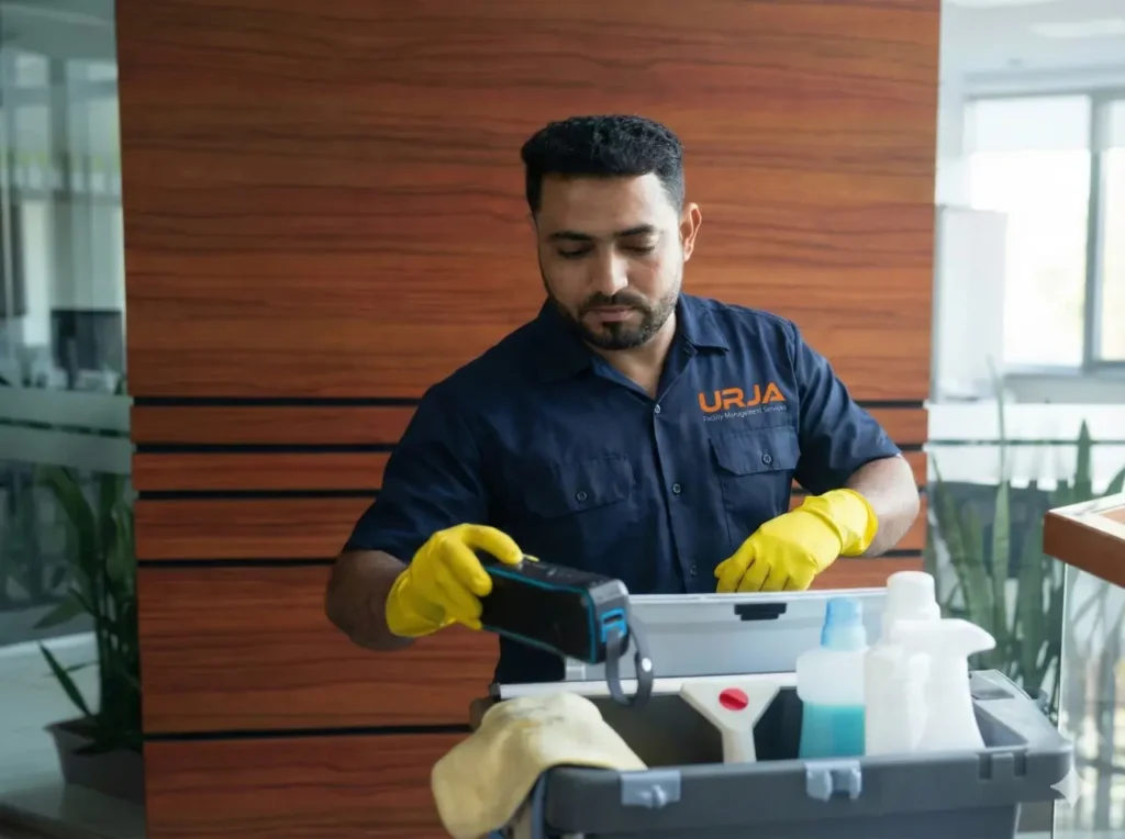 Founded with a vision to revolutionize the facilities management industry, URJA emerged from the recognition that both homemakers and organizations struggled to find reliable, high-quality cleaning and maintenance services.